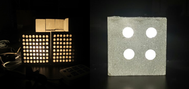 带队教师及部分参赛队员合?/span> (从左至右)客博伟、张锡朋、何政老师、李英敏老师、焦思雨、李忠华 其中,张锡朋团队设计出一套用环氧树脂制备透明混凝土的生产工艺,并制作出树脂透明混凝土成品。树脂透光混凝土是通过将预制的树脂类导光体埋置在水泥基体中而得到的,其工艺流程包括树脂导光体设计及母模制作、模具制作、导光体成形和埋入水泥基体四步。其中,树脂导光体的预制是树脂透明混凝土的核心环节。该生产工艺可以保证产品可以很好地透射不同波段的可见光和红外光,能提高透光率以及透光材料与混凝土的粘结性,可以将艺术观赏性和科学性相结合,具有广阔的市场需求。同时,通过采用树脂导光体作为导光材料,大大提高了透明混凝土的透光率以及材料的粘结性,且能够保证力学强度满足使用要求。该项目团队共发?/span>期刊论文4篇,申请专利1项?/span>
