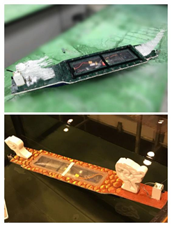 “驭蓝号”的制作队员有刘辛宇、周顺安、贺鑫、刘安隽、付冲,其名“驭蓝”既是我校校花“玉兰”的同音,又寓意龙舟能驾驭蓝色的大海,造势激流而上,表达队员们一举夺冠的决心。另一组“凌水号”的制作团队有林美伶、刘旺、曹鹏东、付冲、李昀锴,其“凌水”是大工人的家,代表凌风而行,逆水行舟的勇气,蕴含了队员们不惧挑战、勇争上游的精神?/span>