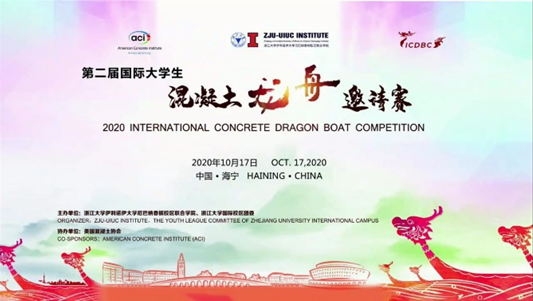 本次赛事由国际混凝土龙舟技术委员会组织,在浙江大学海宁国际校区举办。受新冠肺炎疫情影响,本届比赛通过线下制作、“云”上竞赛的方式进行,根据赛事规则,参赛龙舟要使用混凝土材料体积比不少?0%的混合材料制作,各参赛单位在赛前将成品龙舟模型寄至主办方,通过远程操控参赛,并使用钉钉直播观看全程赛况,评分项目包括技术说明书、材料试件测试、直线竞速赛、障碍行驶赛等?/span>