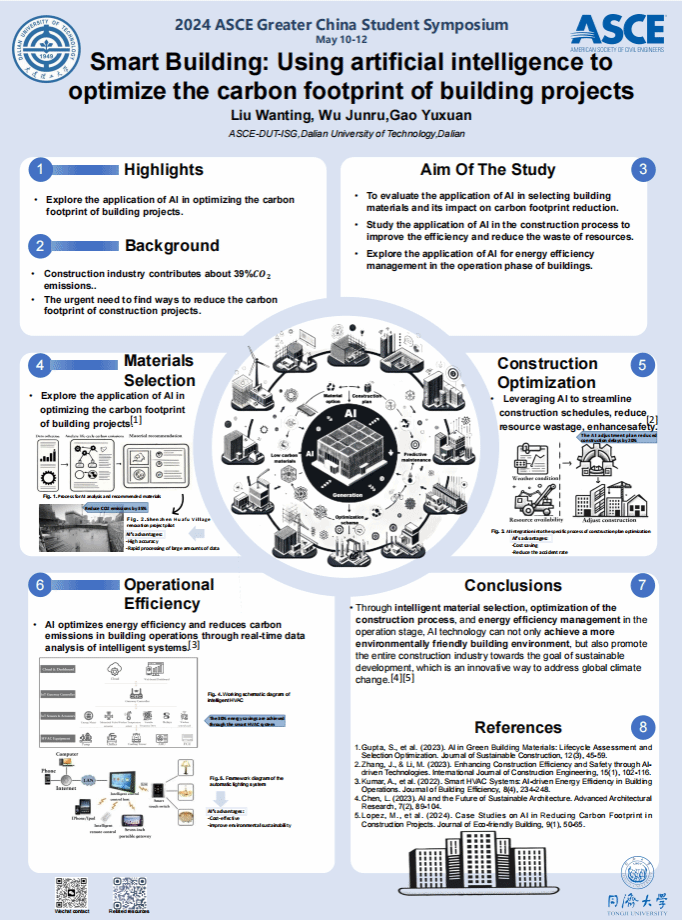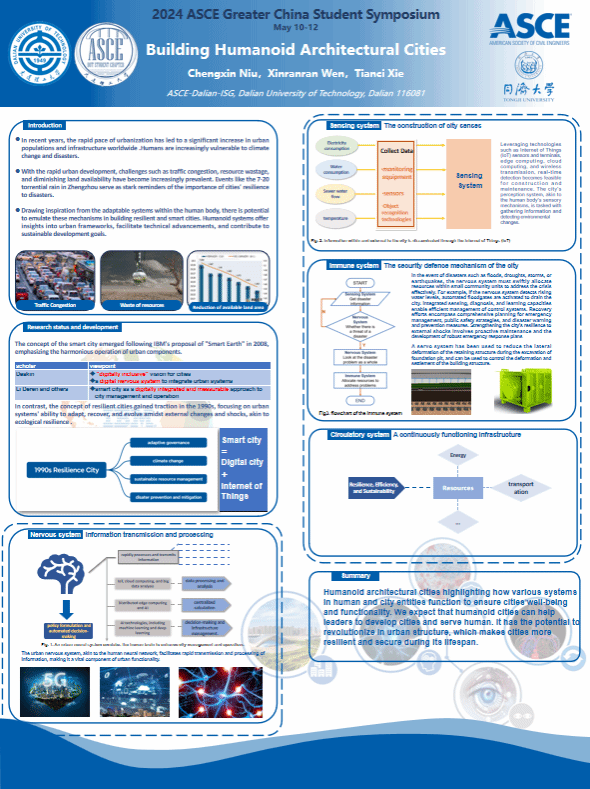 钱诚、叶赟两位同学介绍大连理工大学ASCE学生分会 5?1日下午,在同济大学桥梁馆,各高校代表队就撰写的以构建智能与韧性的未来城市为主题的论文进行汇报答辩。我校土木工程(国际班)专业牛成鑫、温欣然然与智能建造专业谢天赐同学将智能技术类比人体健康系统,让城市在发生地震、洪水、干旱等灾害时,依赖于各系统的密切配合,可以快速进行监测、预警、决策、重新安置人员和灾后重建,为智能与韧性城市的建设提供新思路。最终取得论文比赛第二名,荣获二等奖?/span>