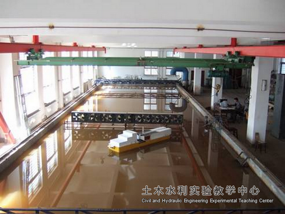 港口航道与海岸工程实验室波浪水流浑水池由造波机、消浪设备、造流设备组成,是进行港口平面布置、近海工程水工结构物基础冲刷等试验研究必须具有的基本设备,主要用于整体模型试验研究。在港池的尾部还设有沉沙池,以拦截泥沙冲刷试验波流带来的泥沙。造流系统包括在港池的前后端留有水流出口,并匹配加流设备(泵、阀门、管系),用以模拟波流共同作用试验研究。水池宽度为8m,水池长度为40m,水池深度为1.0m?/p>